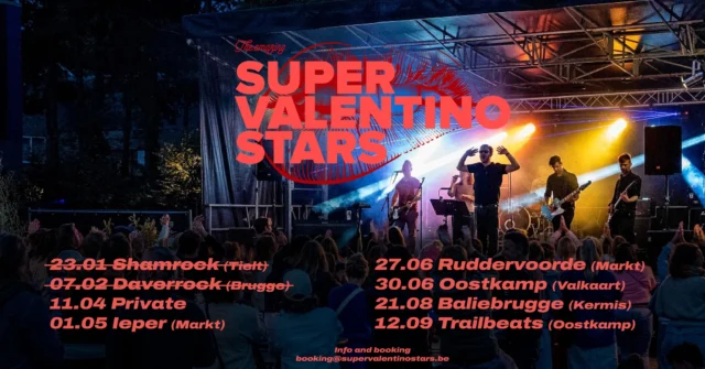 Super Valentino Stars is een dynamische pop rock cover band die sinds 2005 de magie van de grootste hits uit de jaren ’70, ’80, ’90 en ’00 naar het podium brengt. Met een energieke mix van krachtige vocalen, strakke gitaar riffs en een onweerstaanbare ritmesectie weten de Super Valentino Stars elk publiek te betoveren en mee te slepen in een onvergetelijke muzikale ervaring.